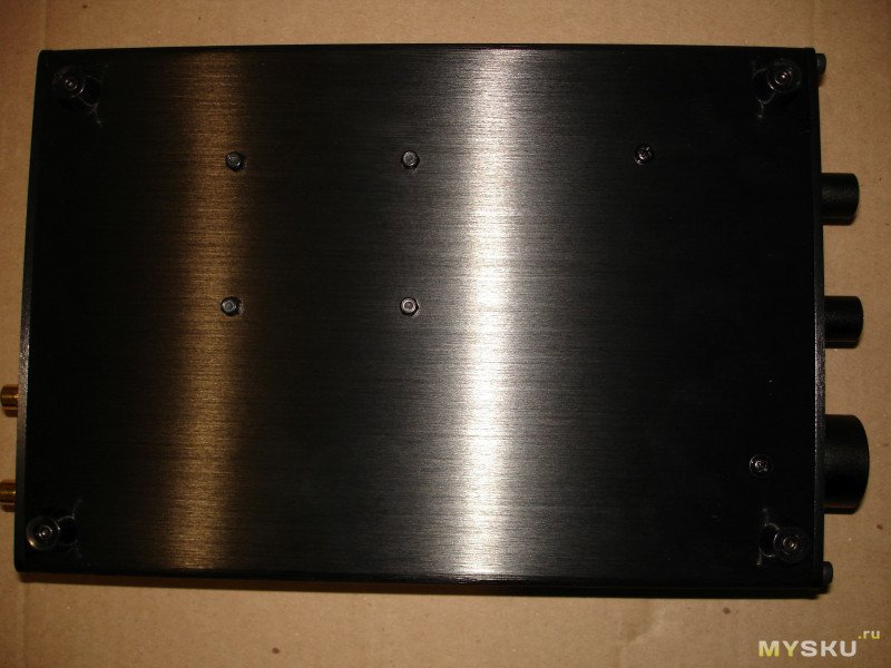 Вид снизу. Видны головки шести винтов, и стоят четыре резиновые ножки: