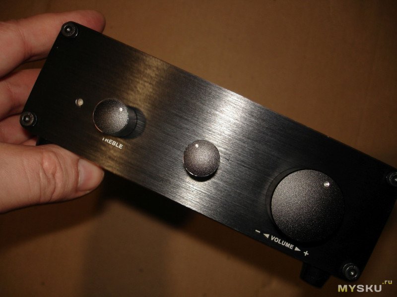 Подключил. Спереди загорелся неяркий синий светодиод.Слушаю. Установил, на вкус, оба регуляторы тембра на 5 часов.