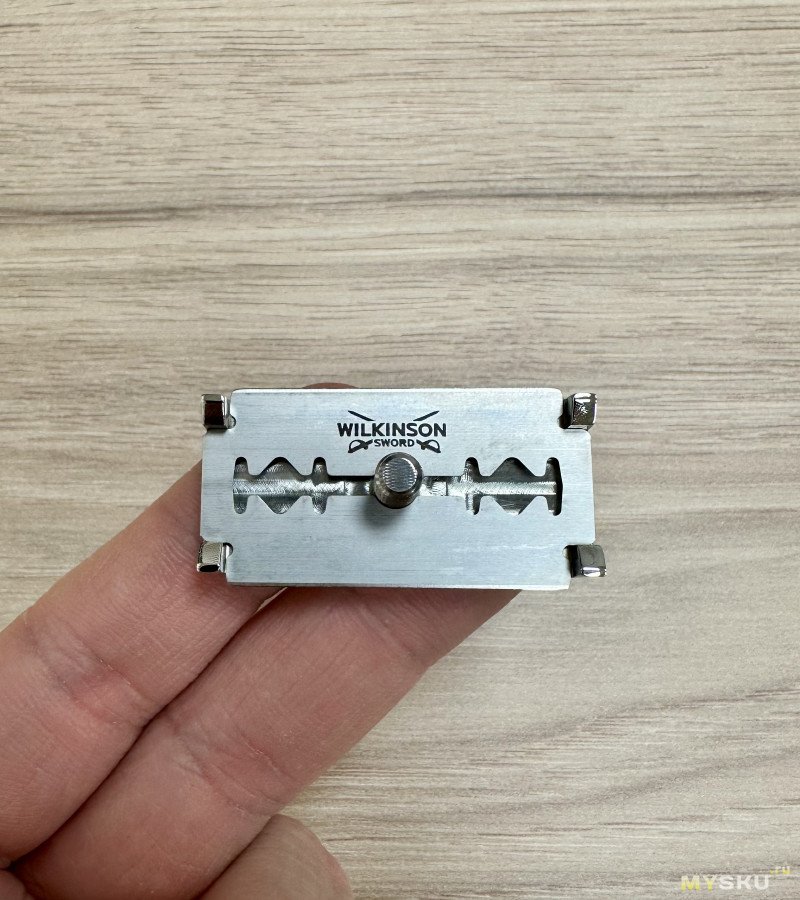 Что касается установки лезвия, то оно легко ложится в верхнюю крышку, где дополнительно фиксируется вертикальными частями верхней плиты с краёв. Лезвие устанавливается и снимается без каких либо вопросов и не цепляется за резьбу верхней плиты.