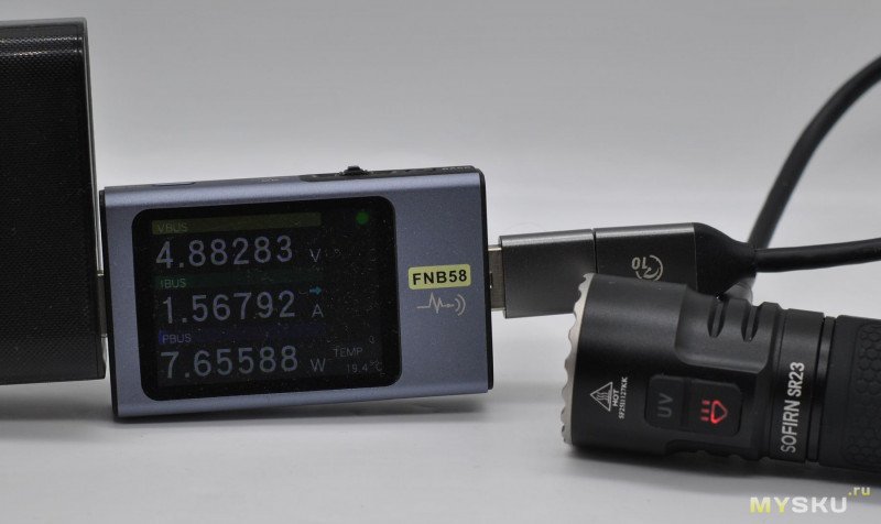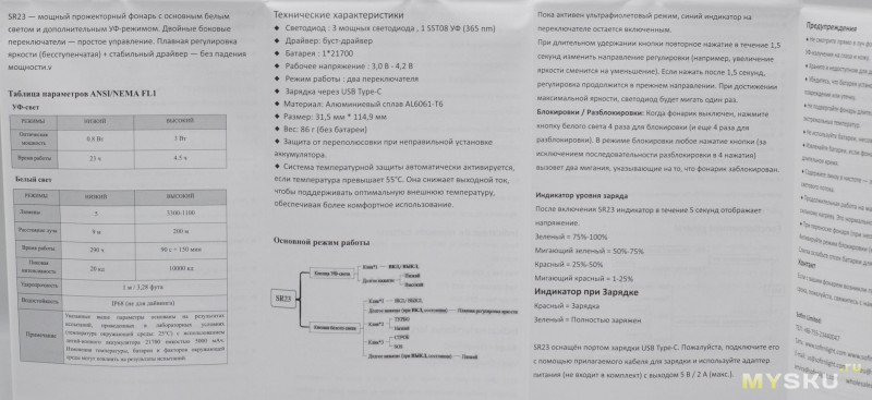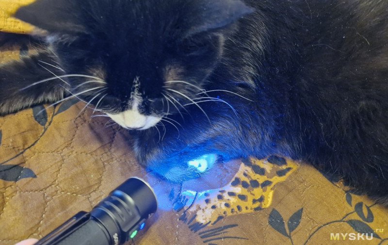 Отмечу, что встроенный УФ тут прям мощный (не то что в наключных фонариках для проверки купюр), тут хоть маникюр в поле фиксируй.