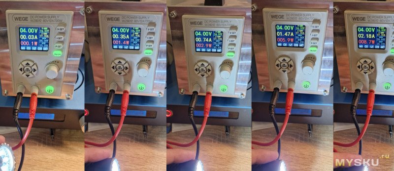 Температура света в районе 6000K, значимых пульсаций нет ни в одном режиме яркости.И напоследок проверим потребляемый ток драйвером фонаря.