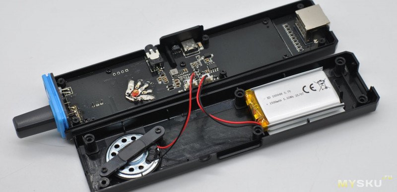 Сбоку борт для зарядки и разъем для наушников. Динамик 2 см выведен на заднюю стенку.Масса на весах 117 г.