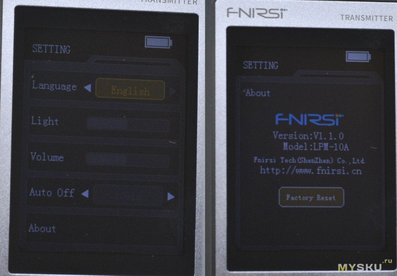 Питание: аккумулятор 3000/1500 мАч (приемник/передатчик)