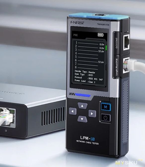 FNIRSI LPM‑10A — практичный и универсальный тестер, закрывающий базовые потребности в диагностике сетевых кабелей. Тут удобный интерфейс и наглядную индикацию (большой цветной экран), полезные дополнительные функции (фонарик, NCV, PoE), хороший запас времени автономной работы. О хранении подумали — есть сумка. Для кого подойдёт: сетевые инженеры и монтажники — быстрая диагностика кабелей, проверка PoE, поиск линий; системные администраторы — обслуживание локальной инфраструктуры; специалисты по безопасности — монтаж и тестирование СКС; домашние пользователи — проверка и ремонт сетевых подключений (например с разветвленной проводной системой умного дома и множеством кабельных подключений).