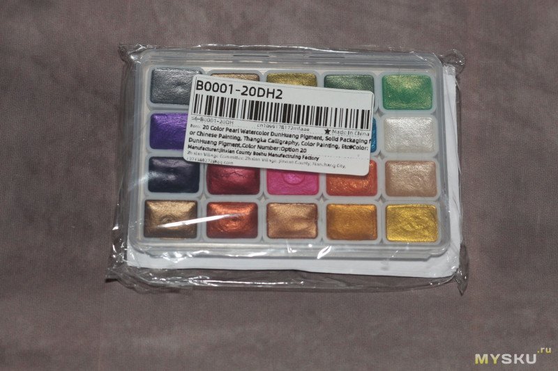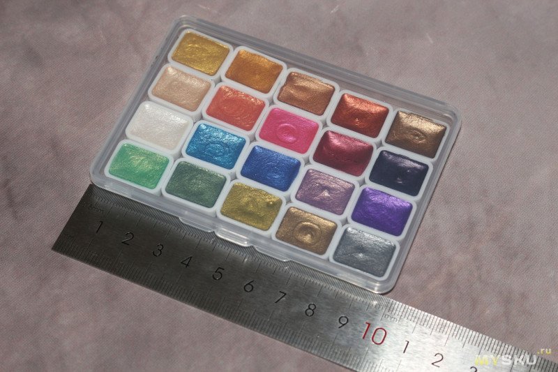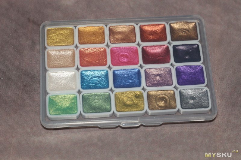 Палитра состоит из 20 цветов в пластиковой коробочке.