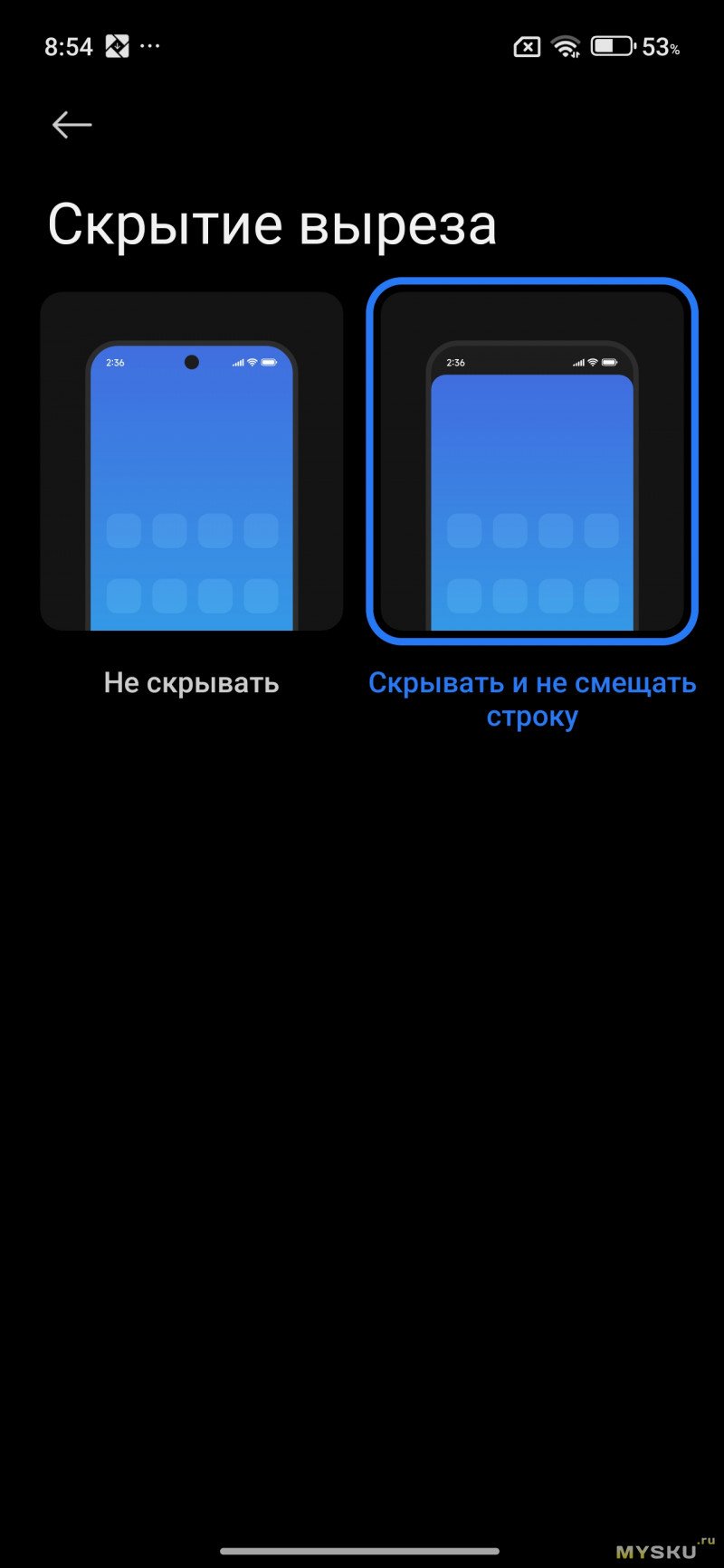 Настройка уведомления и маскировка выреза под фронтальную камеру.