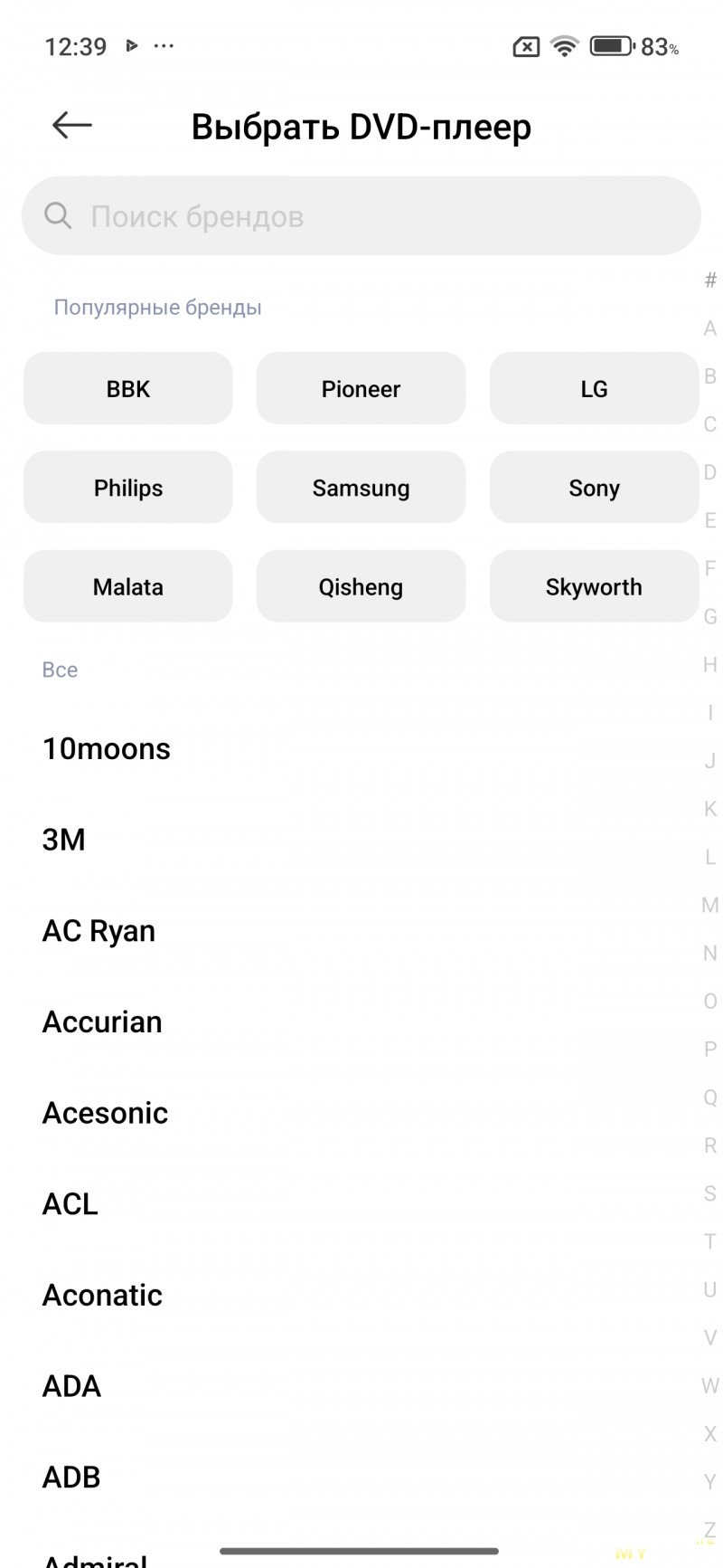 Приложение для настройки пульта ДУ под разную бытовую технику