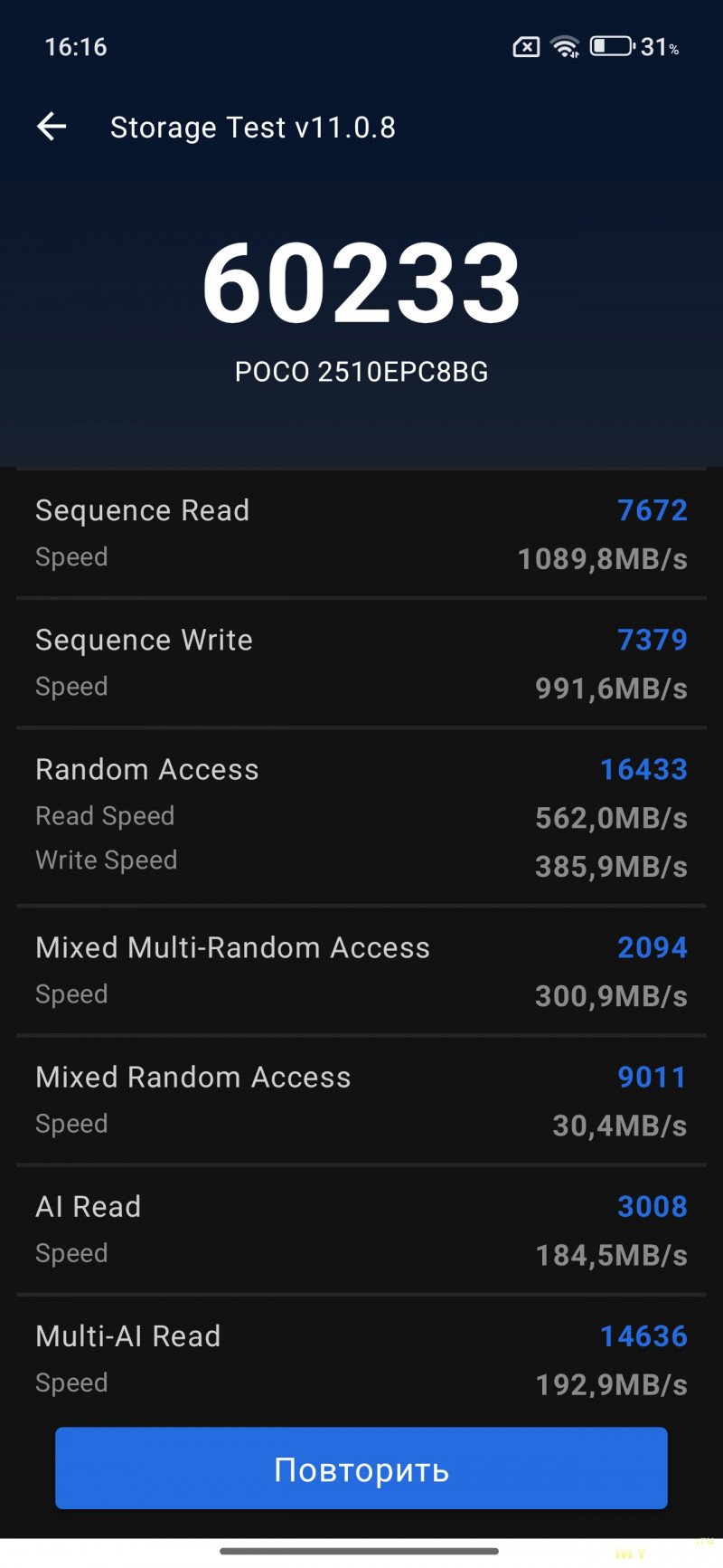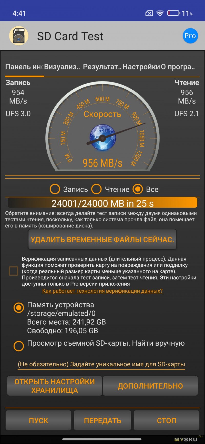 Память в смартфоне работает по стандарту UFS 2.2, скорость записи и чтения находится в пределах 1Гб/с, не самая быстрая память.