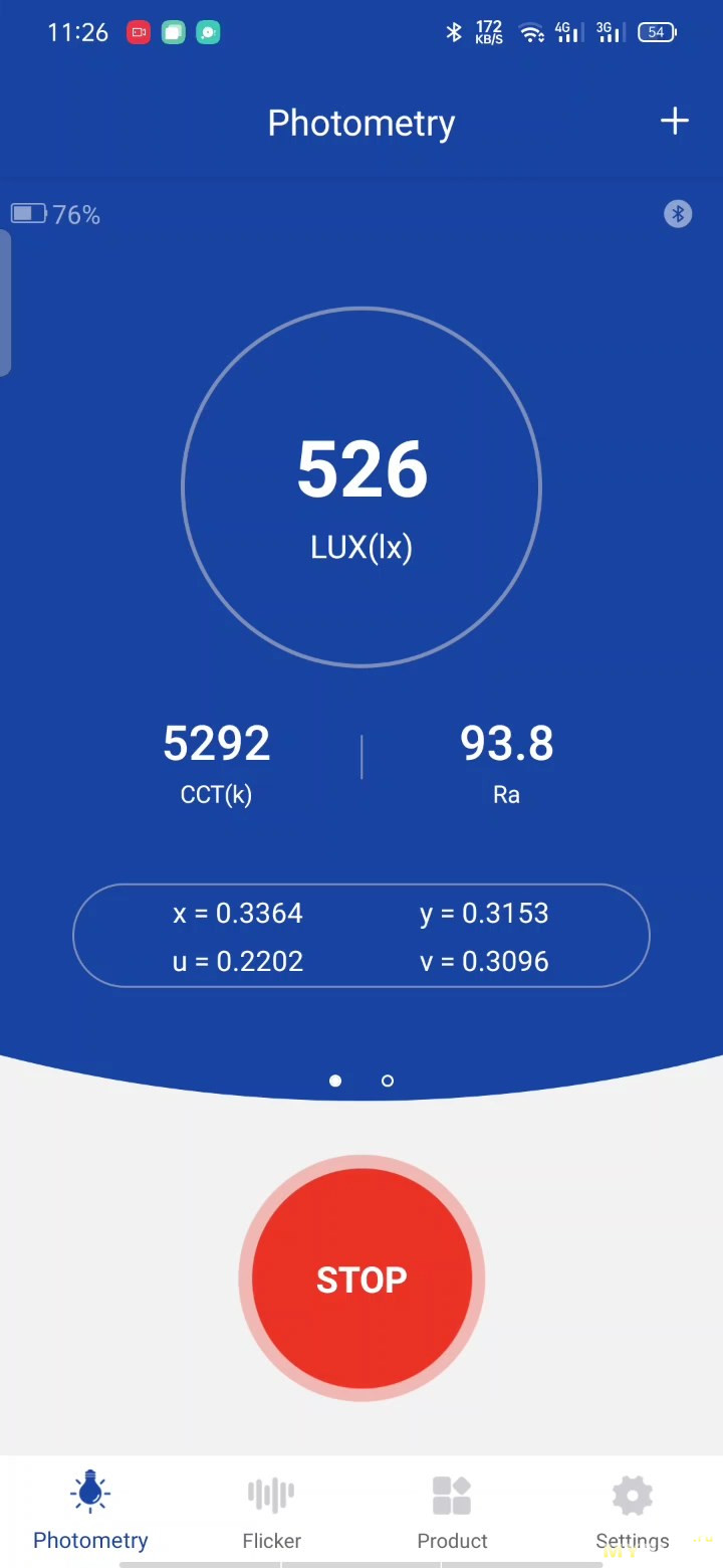 Максимальная измеренная постоянная яркость дисплея 526лкс