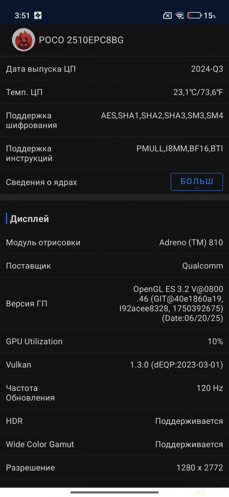 Сводная информация из Antutu