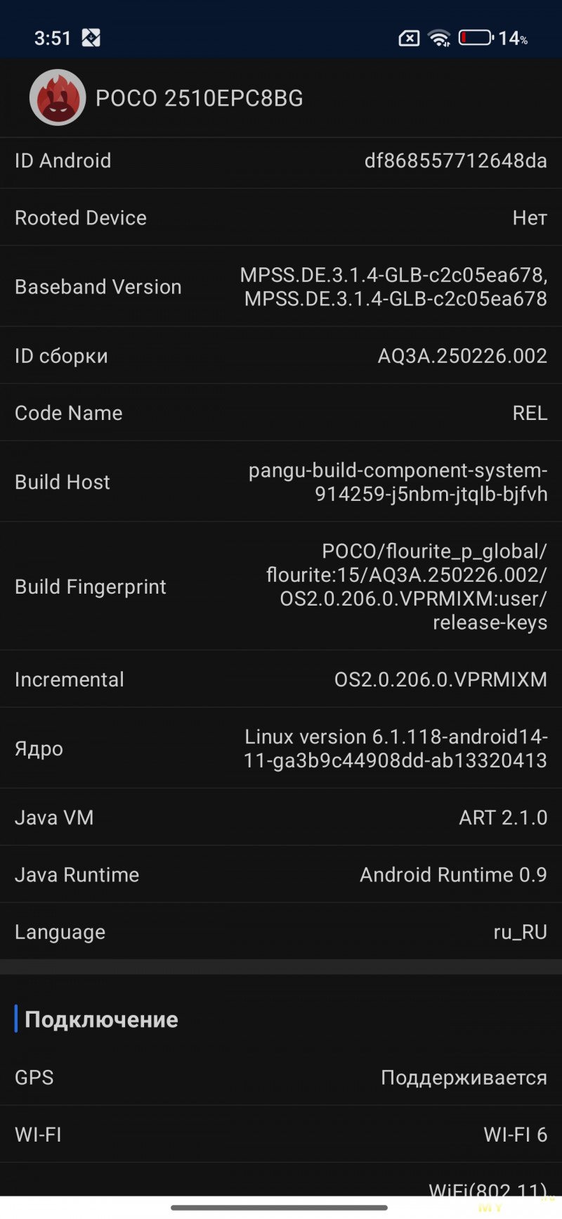 Система построена на базе Android 15, оболочка Xiaomi Hyper OS. После соединения по WiFiтут же прилетела весточка со свежим обновлением оболочки. Во внутреннем хранилище занято около 30Гб из 256Гб.