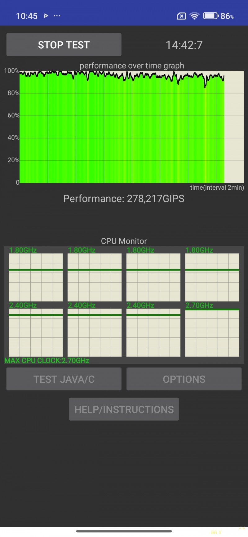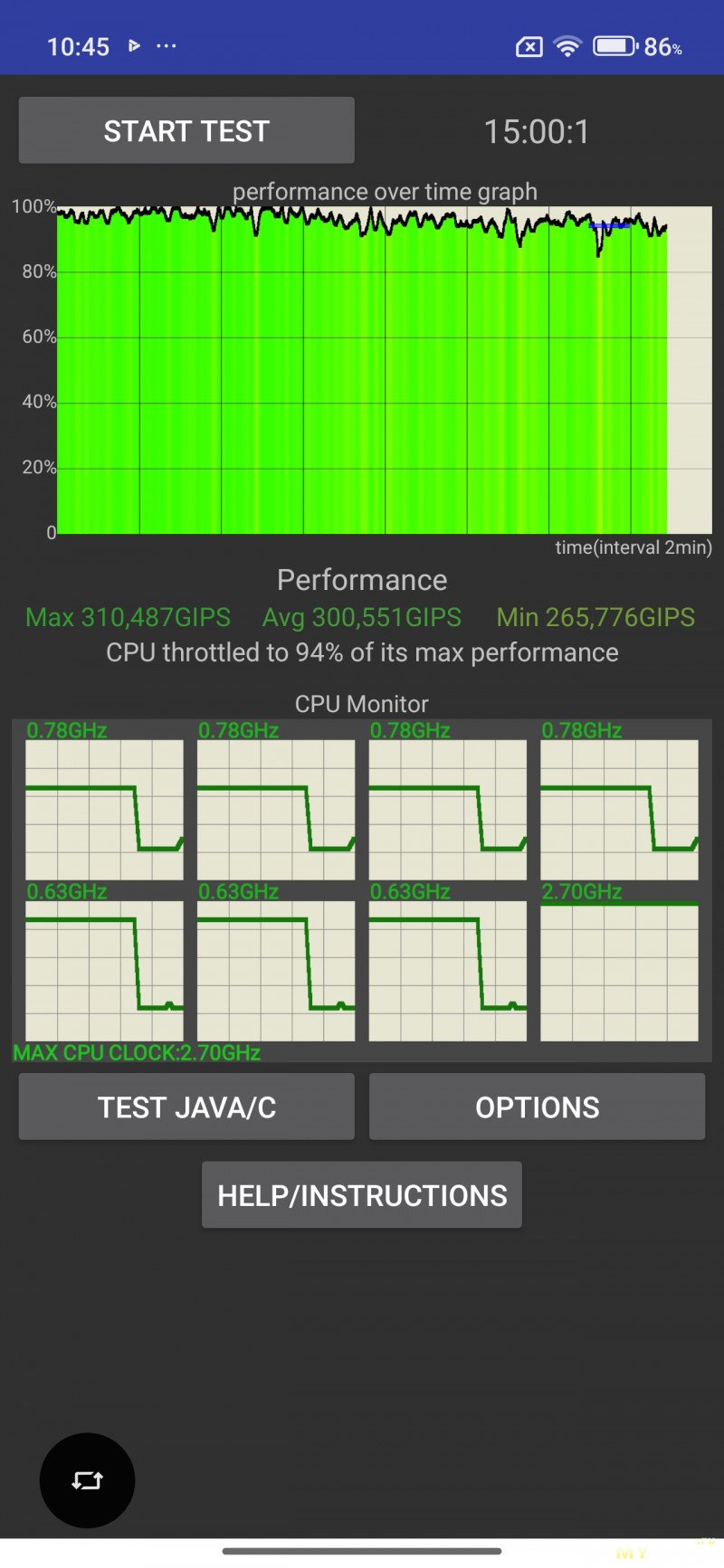 Троттлинг-тест устройство проходит хорошо, процессору перегрев со сбросом частот не грозит.