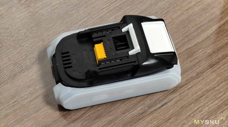 Аккумулятор приехал заряженный до 17,8В в белом силиконовом чехольчике, красивенький такой.