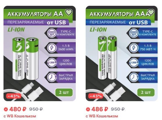 Перезаряжаемые аккумуляторы формата ААА на основе Li-Ion со стабилизированным 1.5V напряжением выхода и токоотдачей до 3A.