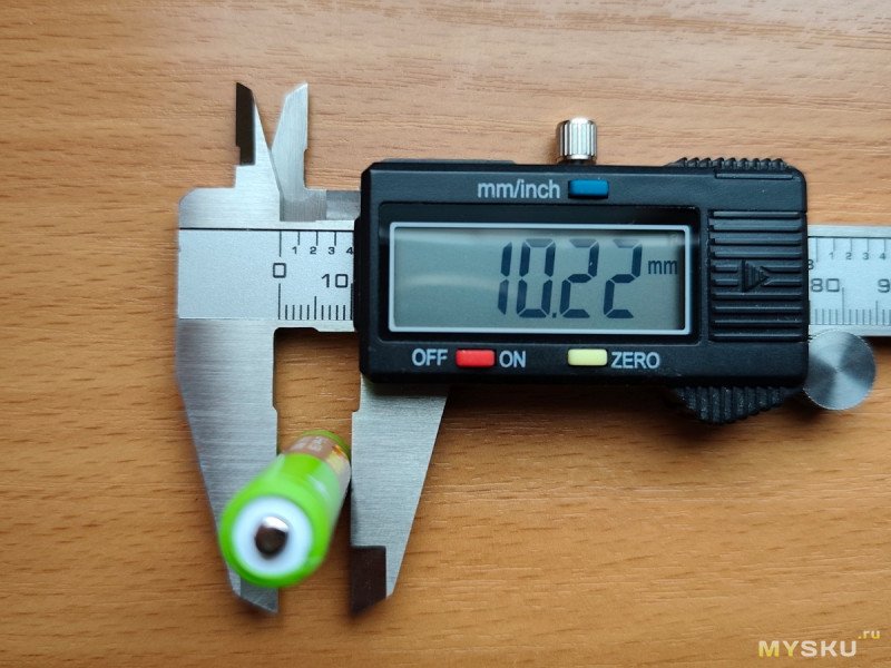 Диаметр 9.6 мм. Ёмкость 283 mAh (тест разряда -100 mA).