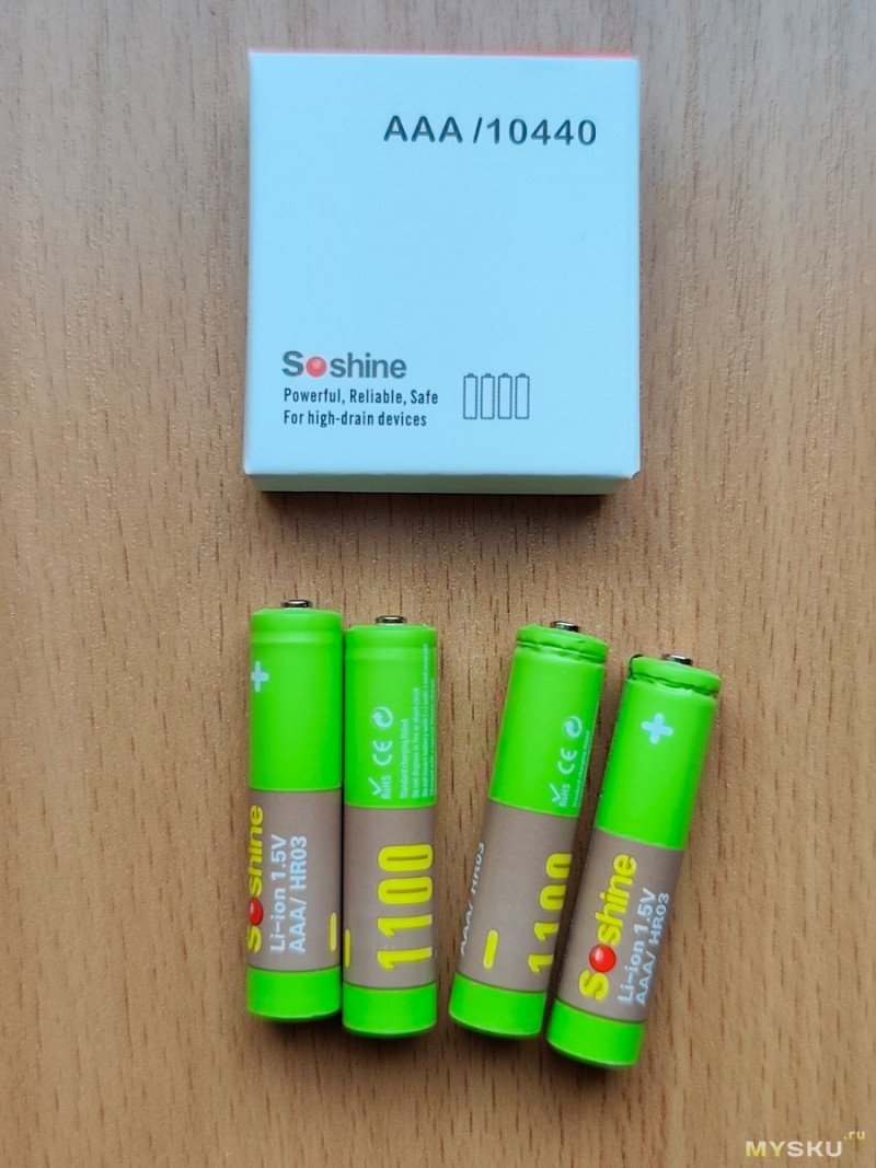 Аккумуляторы Soshine AAA Li-Ion 1,5V 1100 mWh.