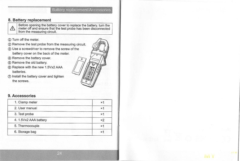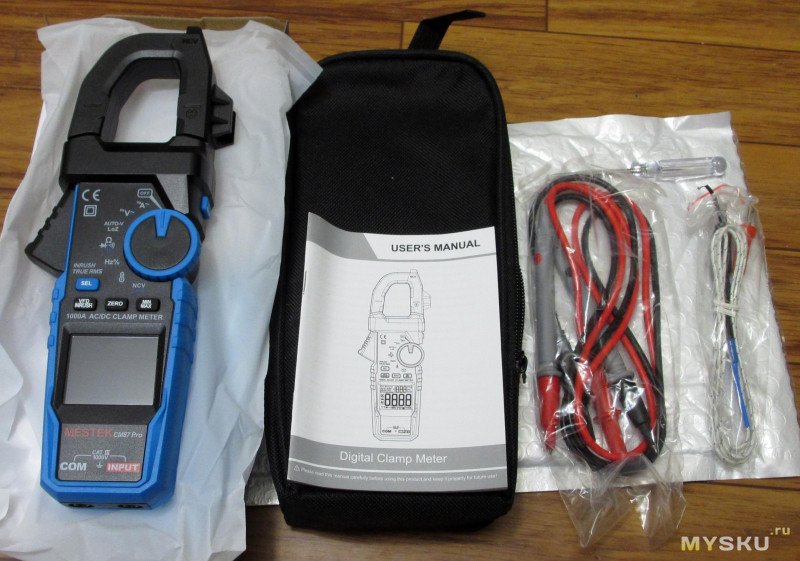 В комплекте клещи, чехол, щупы, термопара, отвертка ph1, инструкция: