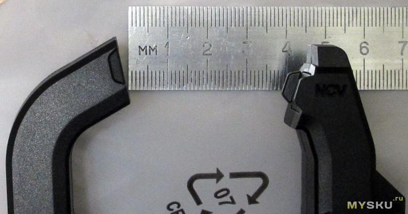 Раскрыв клещей ~38мм, чуть меньше заявленных 42: