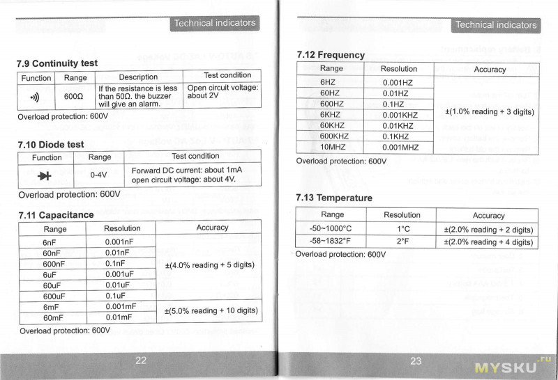 4. Сопротивление/прозвонка/диодная прозвонка/емкостьКнопка обнуления в них неприменима.