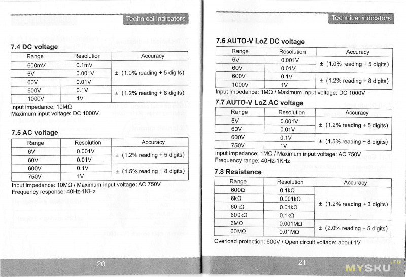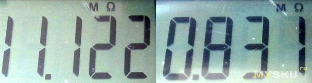 Автоперебор диапазонов начинается с больших значений, так что мегОмы измеряет быстрее, чем Омы. Разрешение на минимальном диапазоне 0.1Ом.