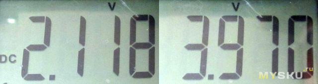 Для всех режимов заявлено, что можно подавать 600вольт без последствий.Питание — ниже 2.65В загорается индикатор разряда, ниже 2.48В тихо отключается.