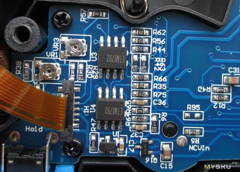 Плата маркирована CM87C, модель уровнем ниже. Контроллер — капля, на плате дорожки под 48ног, внешней eeprom нет. Отдельный контроллер жк ht1621b, lm358(«a42s»), кучка варисторов и ptc, пара etm1792 — не нашел что это такое.