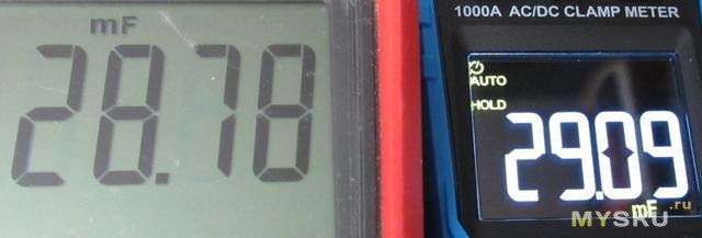 Емкость — 83мФ не смог. 27мФ измерял секунд 10.