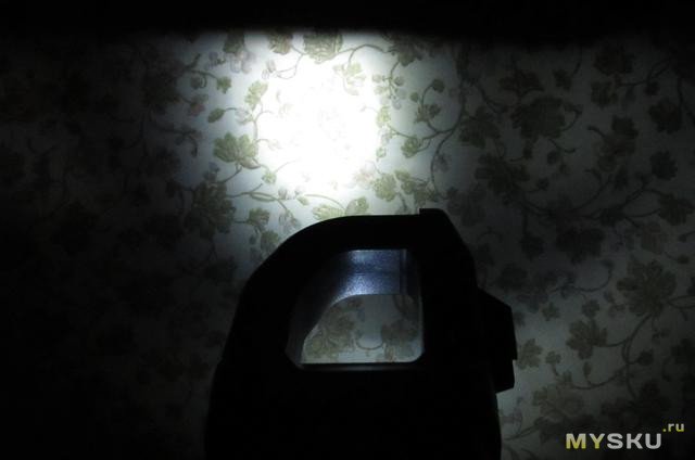Есть кнопка hold/фонарик, в состоянии hold противно пищит раз в 2-3 секунды, фонарик отключается минут через 6. Светит он хиленько, выглядит вот так: