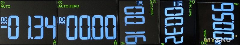 в моем экземпляре у постоянного тока смещение ~-1.5А, обнуление запоминает до отключения питания. хоть функция на кнопке одна, но обнуление требует длительного ее удержания (при этом подтверждающий писк — только при коротком).