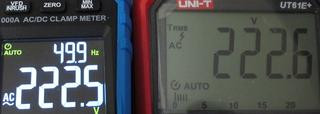 Самое интересное, измерение пикового тока — включать режим не удобно, каждый повторный замер надо выходить из режима и включать его, длительно удерживая кнопку. Результат измерения похоже усредняет на каком-то периоде, вроде бы и меньшем, чем заявленная частота измерения в 3Гц, но все равно при замере сетевых 50Гц от 1 до 6 периодов частоты рост показаний был в разы.