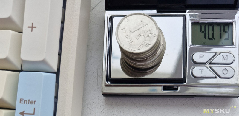Беспроводное соединение 2,4 ГГц обеспечивает задержку 4,72 мс — этого достаточно для плавной игры без ощутимых задержек. При использовании Bluetooth 5.0 задержка составляет 15 мс.Измерим силу продавливания свитча стопкой монеток: