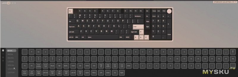 Специализированного ПО под эту модель на официальном сайте марки нет, но есть JSON файлы для настроек. Eсть RU раскладка. Можно настроится (преназначение, макросы, тонкие настройки) с кроссплатформенного VIA.