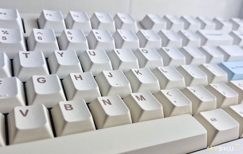 Пару слов про кейкапы (Cherry профиль, PBT пластик): они вогнутые, гладкие, грани не сглажены. Толщина стенки 1,5 мм.