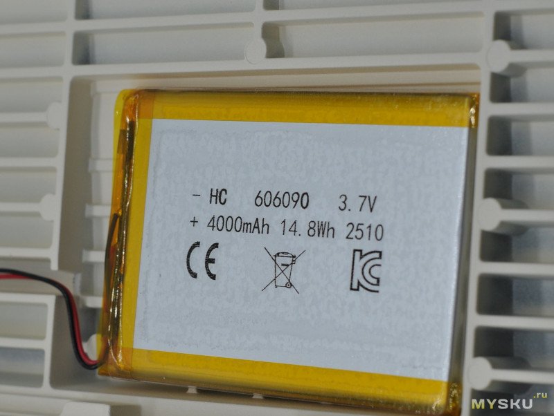 АКБ — из пары параллельных плоских банок на 4000 мАч 14,8 Втч: