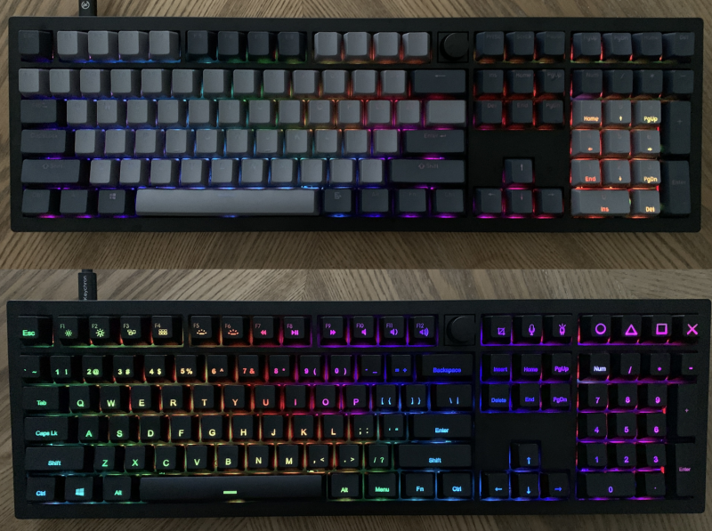 Настроить можно патерн, яркость, скорость эффектов либо выключить.Пару слов про кейкапы (Cherry профиль, PBT пластик): они вогнутые, гладкие, грани не сглажены. Толщина стенки 1,5 мм.