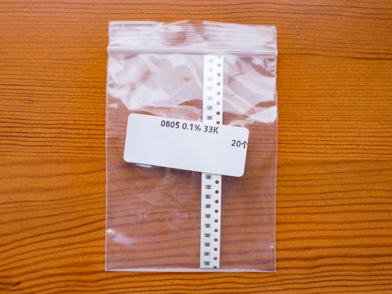 Я приобрел на пробу несколько номиналов резисторов типоразмера 0805 в двух разных магазинах на Али, лоты с положительными отзывами и десятками продаж. Резисторы приехали расфасованными по отдельным пакетикам с этикетками, ленты и сами резисторы на вид совершенно одинаковые, с покрытием черного цвета и четырехзначной цифровой маркировкой, в каждой ленте по 21-22 штуки.