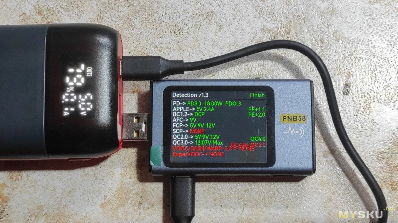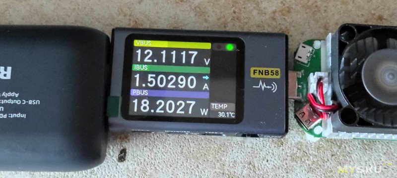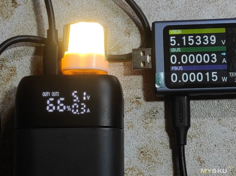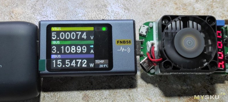 При этом повербанк показывает ток, но вместо 3.1 показывает 3.3А, напряжение тоже завышает.