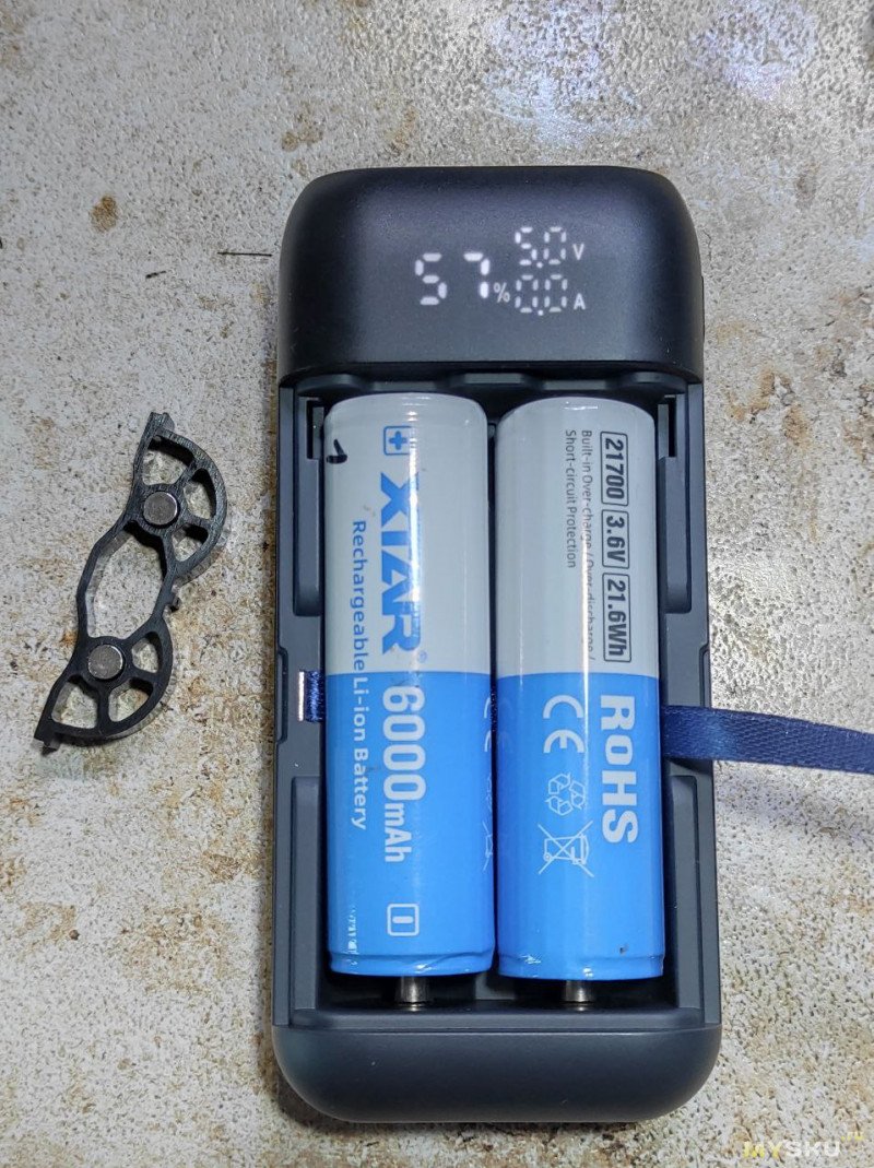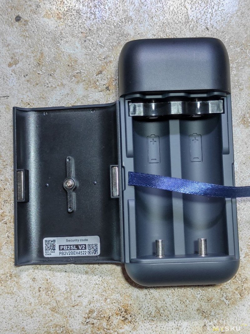 Крышка держится на магнитах, держится хорошо. Внутри есть ленточка, потянув за которую удобно вытаскивать аккумуляторы. В крышке есть деталь, которую нужно повернуть, чтоб аккумуляторы 18650 не болтались.