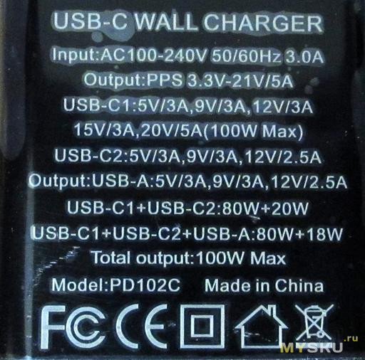 выше 12В кроме PD нигде нет, поддержка 5А не зависит от кабеля.C1 при нагруженных C2/A — мощность урезается до 65Вт (обещано 80):