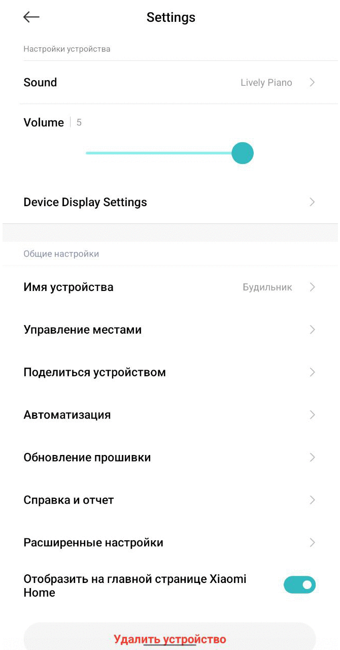 В приложении Xiaomi Home, нам доступны такие настройки: