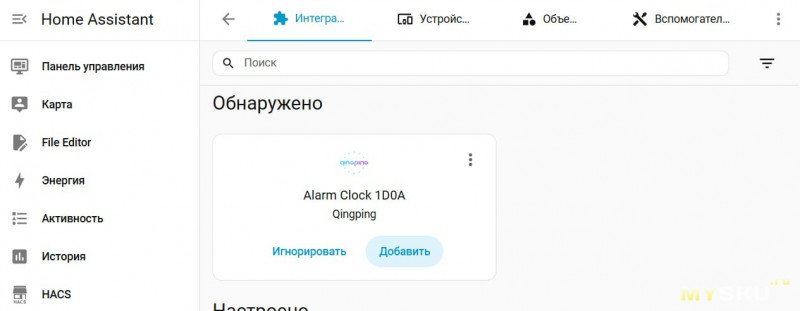 При включении Qingping Bluetooth Alarm Clock (подаче питания), в Home Assistant, система его автоматически увидела и предложила добавить.