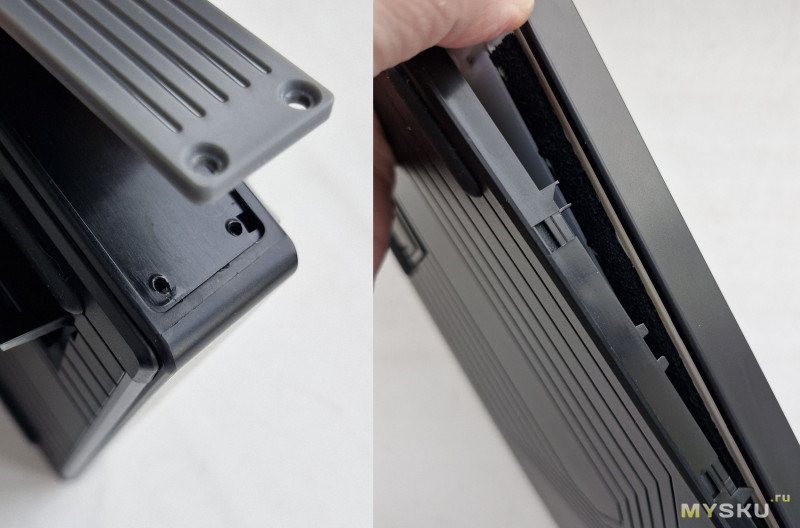 По бокам полоски для RGB подсветки. Есть силиконовые ножки против скольжения и складные опоры.
