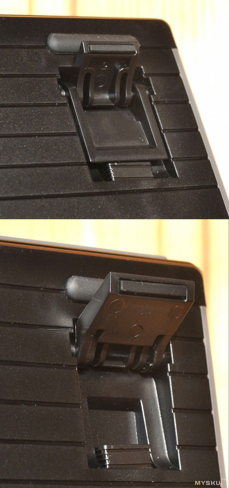 По бокам полоски для RGB подсветки. Есть силиконовые ножки против скольжения и складные опоры.Опоры на два положения: