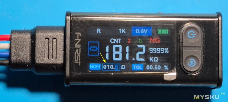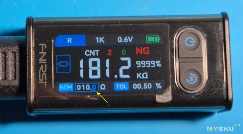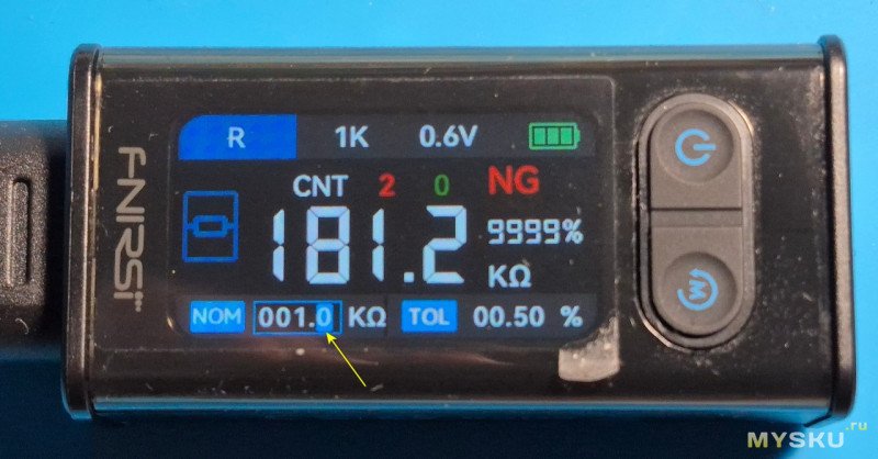 Чтобы перейти к установке номинала резистора зажимаем качельку и опция установки номинала активируется.
