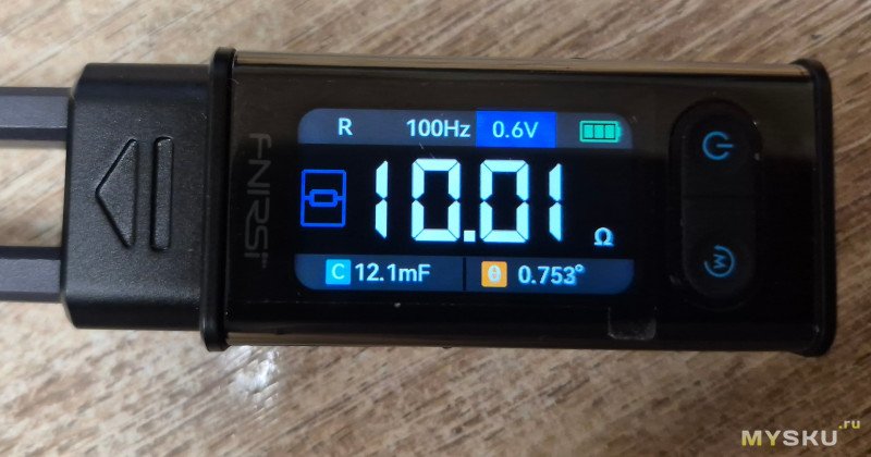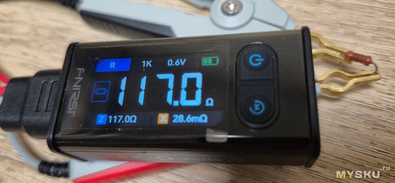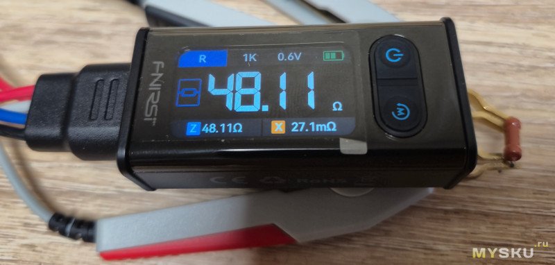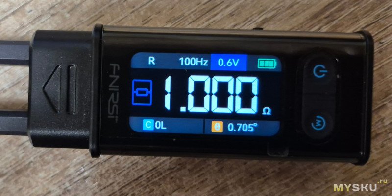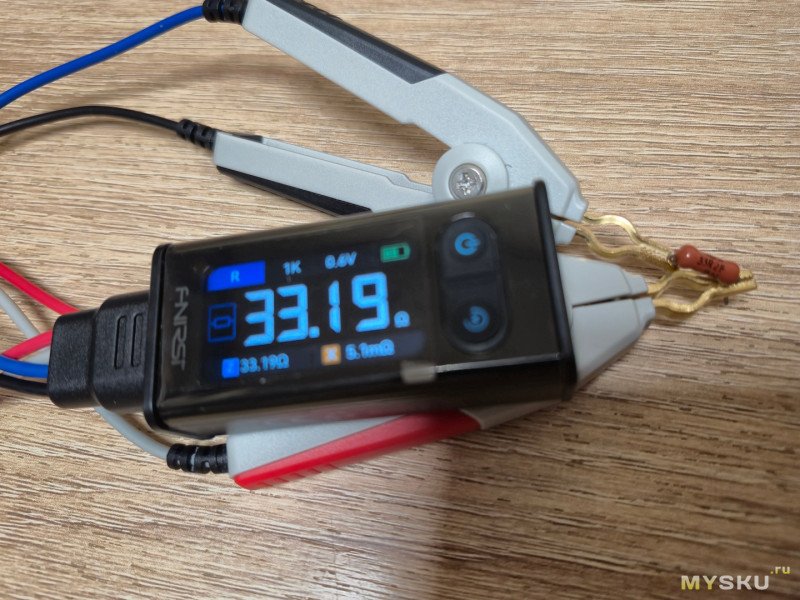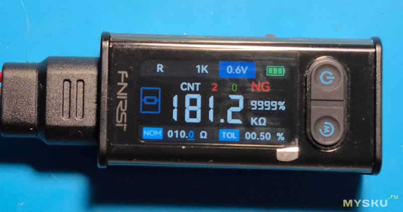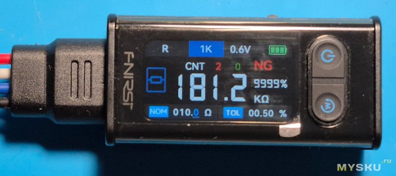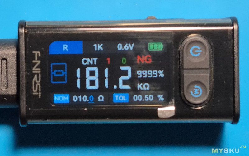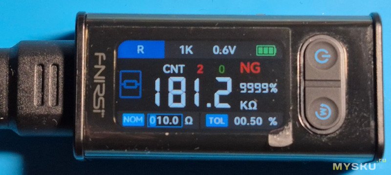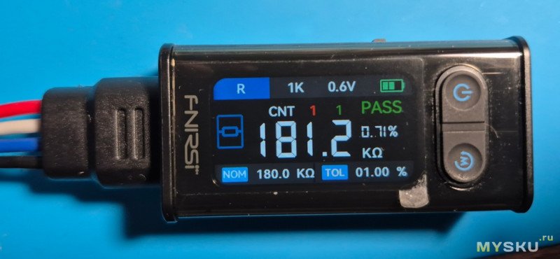 Резистор в допуске… Об этом говорит зеленая надпись PASS. Также отображается процент допуска в который реально уложился резистор- 0,71%.