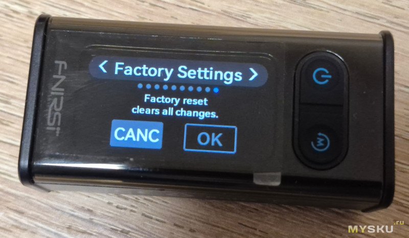 На сайте FNIRSI есть новая версия прошивки. Пока не обновлял…Сброс к настройкам «по заводу».