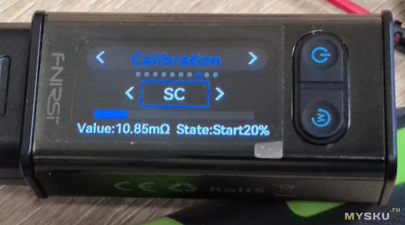 SC — калибровка «0» с замкнутыми щупами. Нажимаем качельку, активность показывается синим прямоугольником вокруг выбранного параметра. Для начала калибровки жмем еще раз качельку. Ждем пока закончится калибровка…