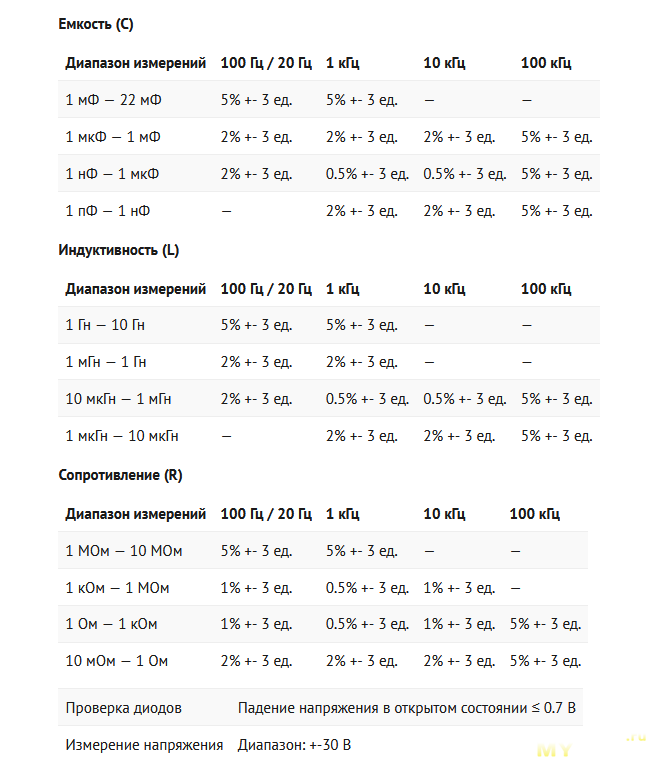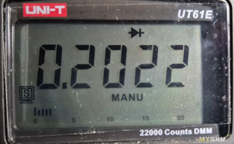 В режиме проверки диода значения частоты и напряжения измерения в этом тестере зафиксированы и не изменяются.