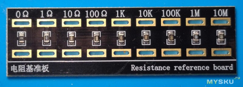 Сначала замеряем сопротивления на плате с набором резисторов что пришла с тестером.
