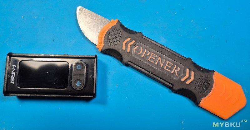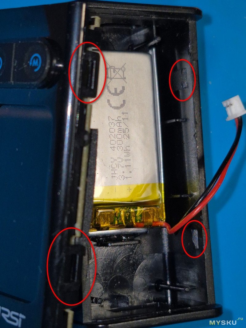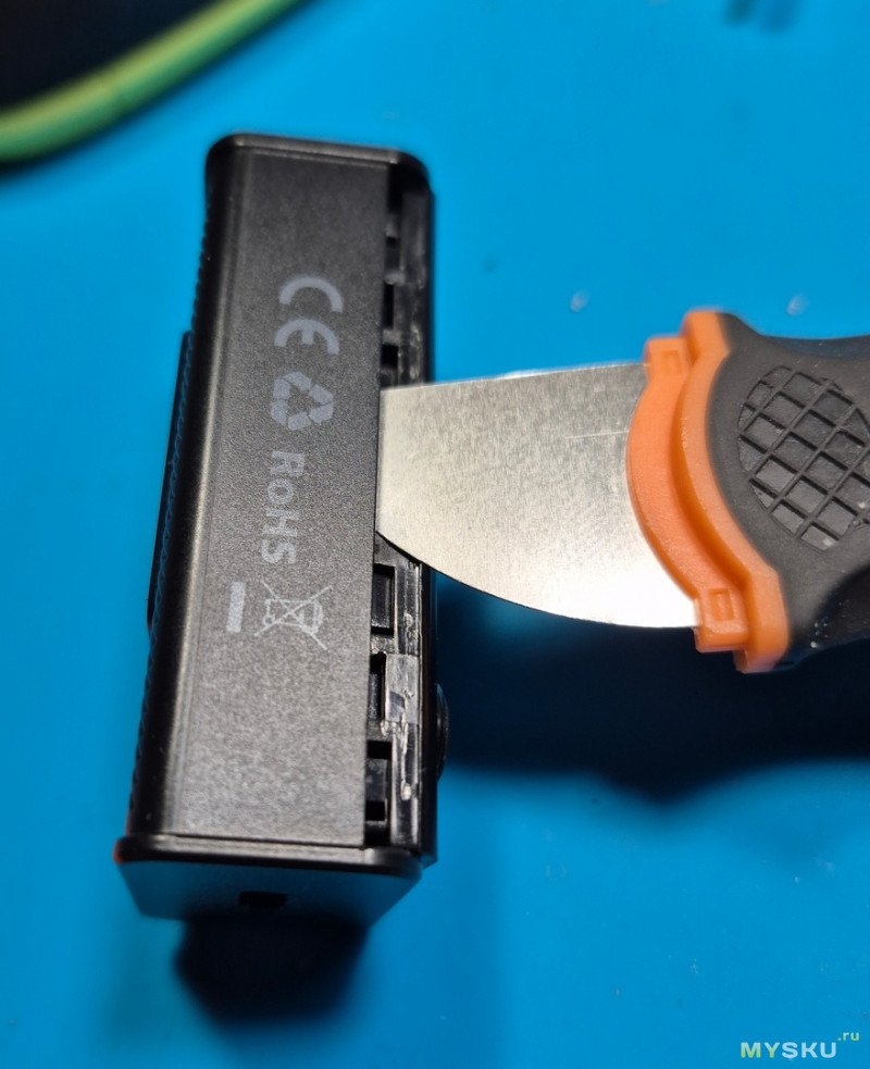 Далее с противоположной стороны от качельки спунжером залазим между основным корпусом прибора и его верхней частью, и отщелкиваем две защелки.